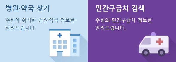 급할경우 민간구급차 정보 까지 얻을수 있기에 부득이하게 구급차까지 이용하시고 싶은 분들은 이 카테고리를 잘 활용해주면 됩니다.